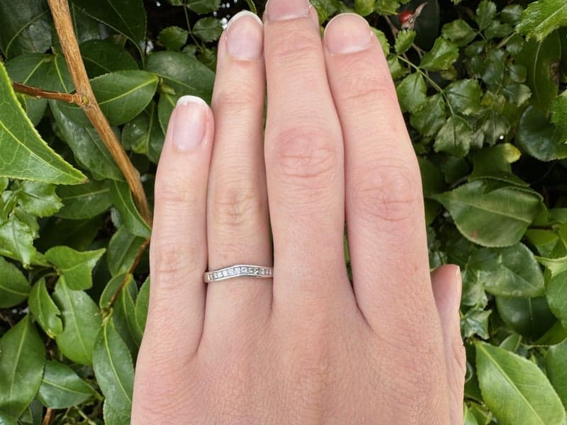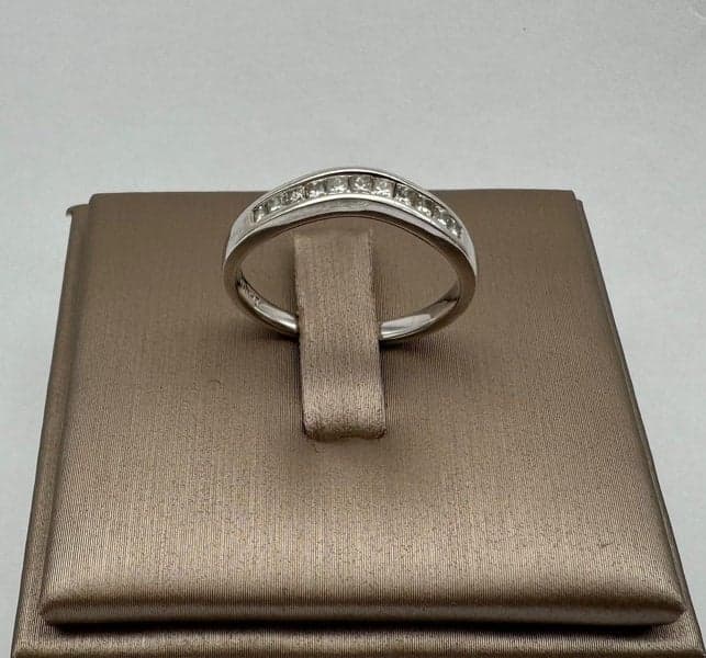 On offer here is a 18ct White Gold 0.25ct TDW Princess Cut Diamond Curved Band Ring.