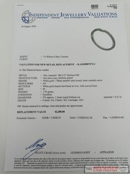 Stamped: 18K Michael Hill 0.27
