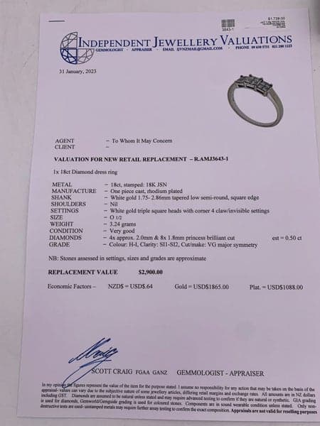 Replacement Value: $2,900 NZD
