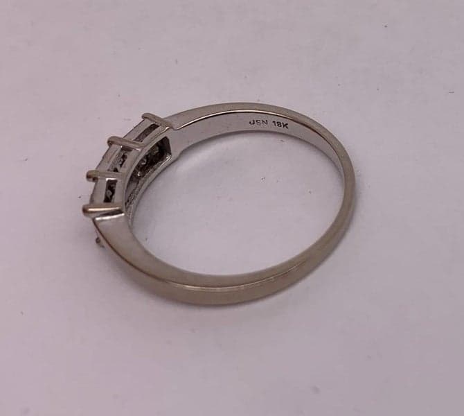 This ring features 12x princess cut diamonds set in an 18ct white gold setting.