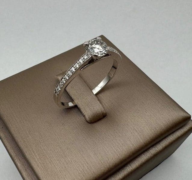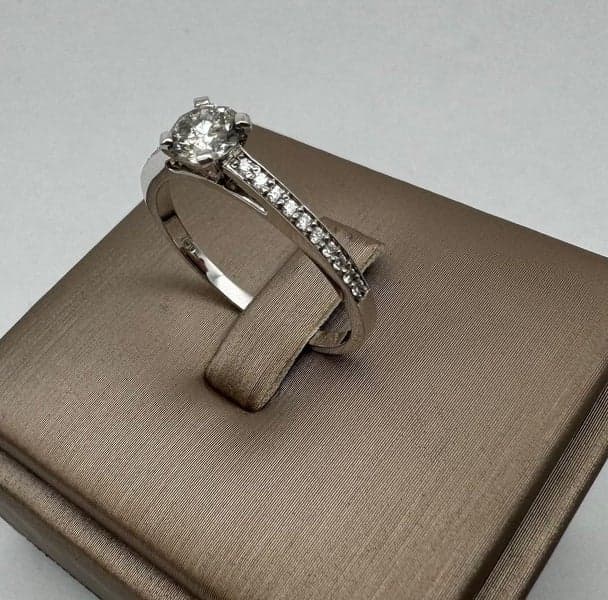 On offer here is an 18ct White Gold Diamond Solitaire Ring with Shoulder Diamonds.