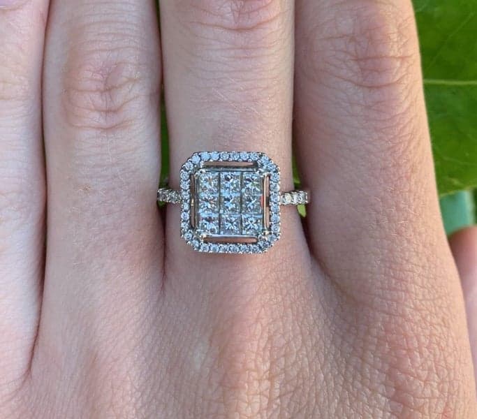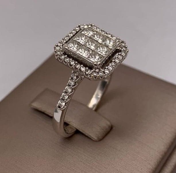 18ct White Gold 1.0ct TDW Round Brilliant & Princess Cut Cluster Ring ~ $4,900!