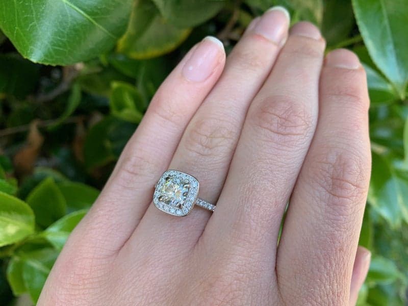 This ring features 1x round brilliant diamond with 48x surrounding diamonds set in a cushion cluster head 18ct white gold setting.