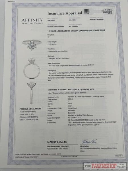 We have sourced this beautiful lab-grown diamond from around the world and have custom made this stunning ring. Includes an insurance appraisal valued at $11,850!!