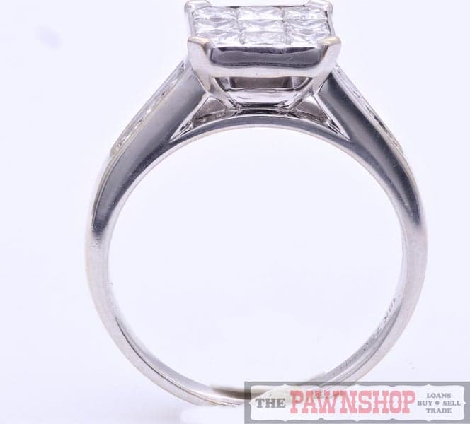 18CT White Gold 9-Stone Diamond Ring w/6 x Shoulder Diamonds