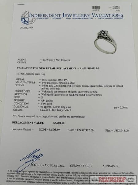 18ct White Gold Diamond Dress Ring ~ $3,900!