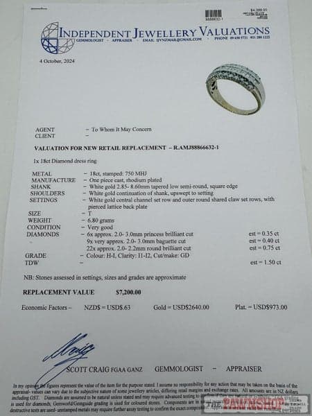 18ct White Gold Princess, Baguette & Round Brilliant Dress Ring ~ $7,200!