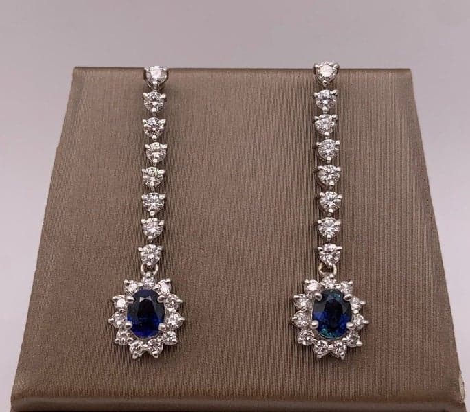 18ct White Gold Sapphire & Diamond Drop Stud Earrings ~ $6,600!