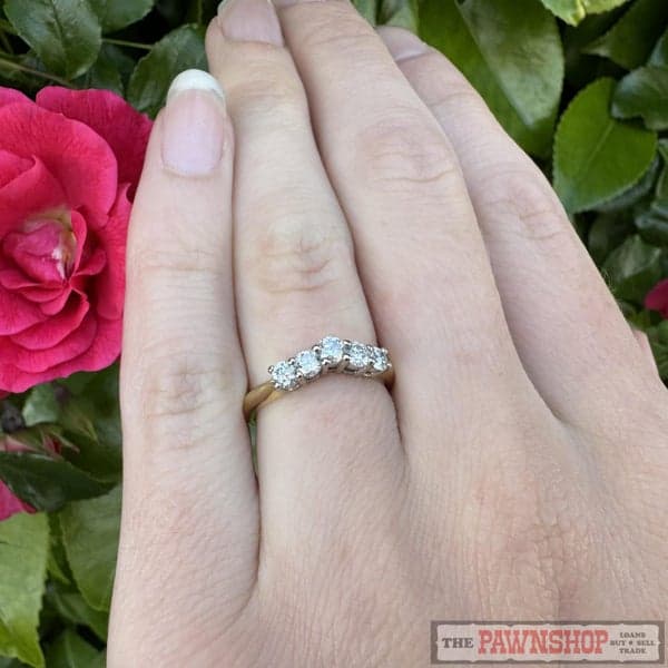 On offer here is a 18ct Yellow Gold Five Stone Diamond Ring.
