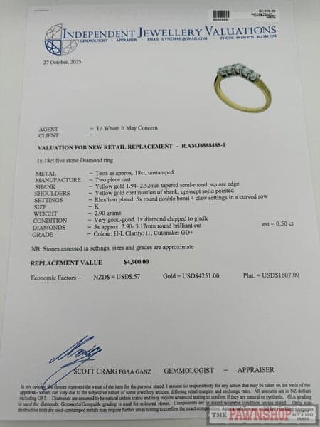 18ct Yelloiw Gold Five Stone Diamond Ring ~ $4,900!