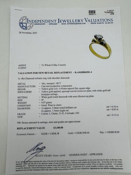 Replacement Value: $3,100 NZD