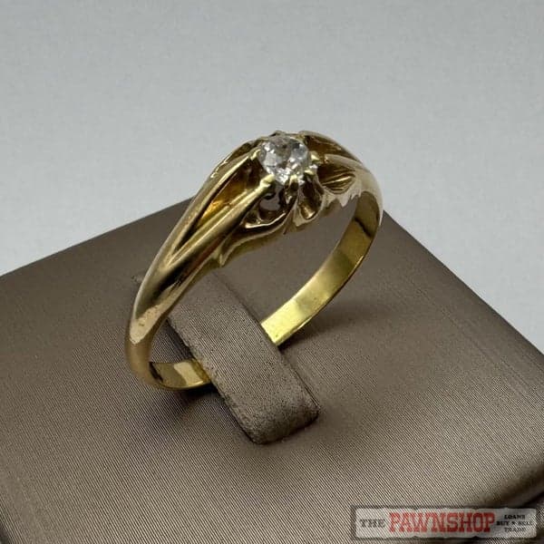 On offer here is a 18ct Yellow Gold 0.20ct Diamond Gypsy Ring