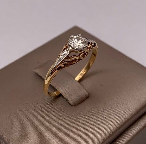 On offer here is an 18ct Yellow 0.25ct Round Diamond Filigree Style