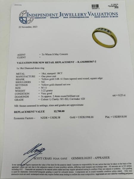 Replacement Value: $2,700 NZD