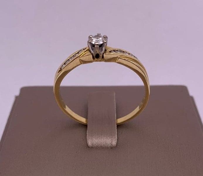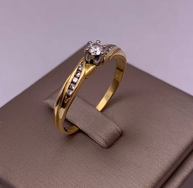 This ring features 1x Solitaire diamond with 10x shoulder diamonds set in a 18ct yellow gold setting.