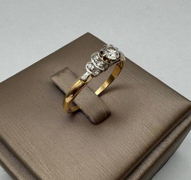 On offer here is an 18ct Yellow Gold & Platinum Diamond Solitaire Ring with Shoulder Diamonds.