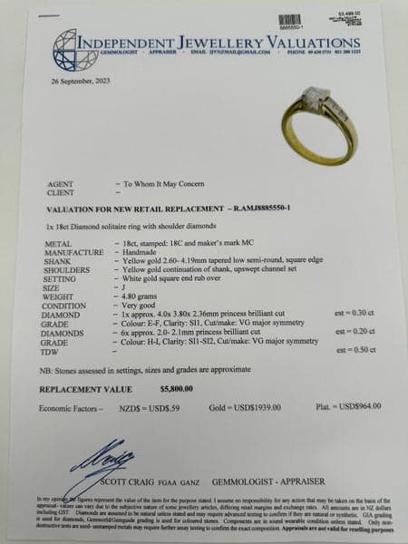 Replacement Value: $5,800 NZD