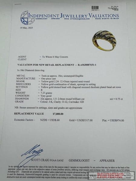 On offer here is a 18ct Yellow Gold 0.75ct TDW Diamond Dress Ring.