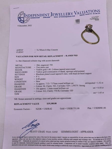 On offer here is a 18ct Yellow Gold 1.52 Carat Diamond Solitaire Ring.