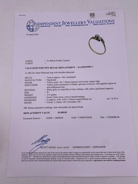 18ct Yellow Gold 2x Diamond Crossover Ring ~ $5,400!