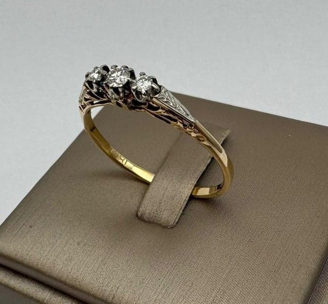 On offer here is an 18ct Yellow Gold Three Stone Diamond Ring