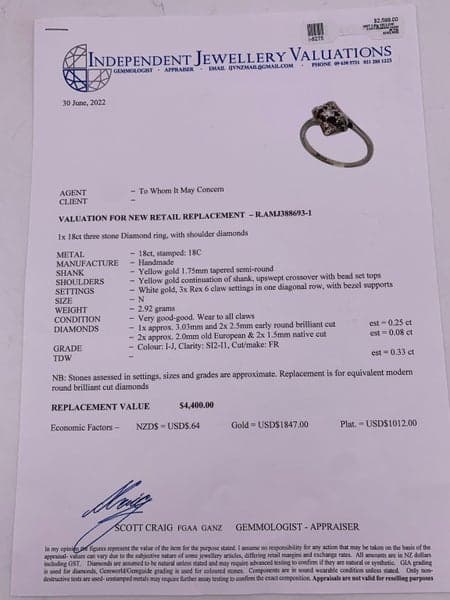 Replacement Value: $4,400 NZD