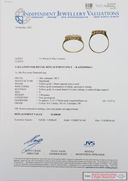 On offer here we have this gorgeous 18ct Yellow Gold 5 Stone London Bridge Diamond Ring with a total diamond weight of 0.25cts, and an independent valuation of $3,400.