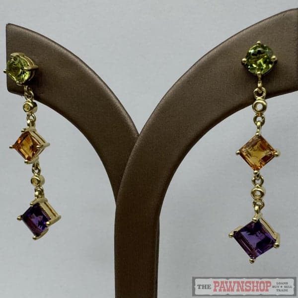 18ct Yellow Gold Amethyst, Peridot & Citrine Drop Stud Earrings ~ $3,500!