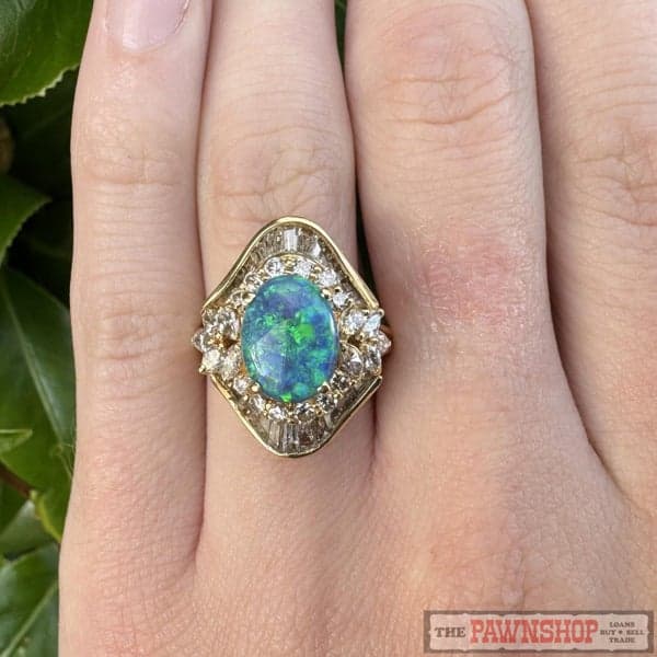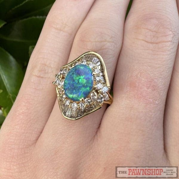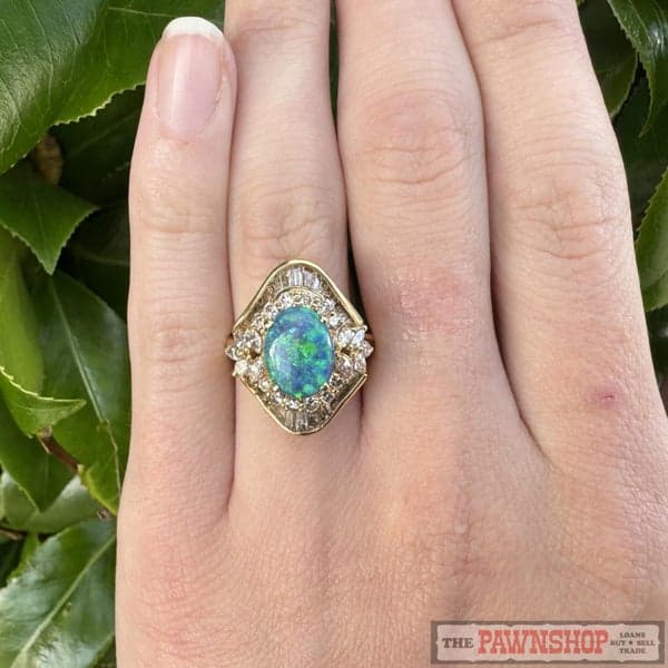 18ct Yellow Gold Black Opal & Diamond Dress Ring ~ $11,000