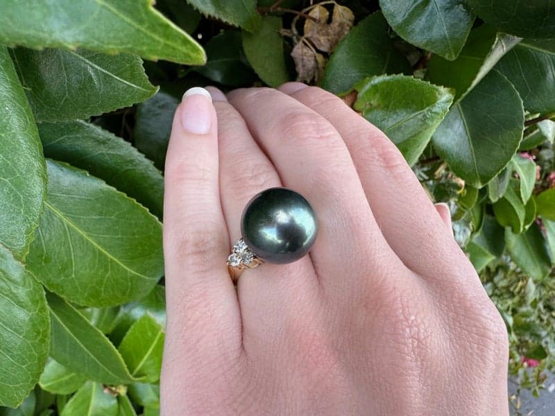 18ct Yellow Gold Black Pearl & Diamond Ring ~ $10,200!