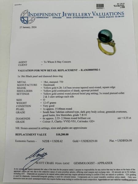 Replacement Value: $10,200 NZD