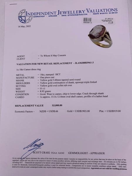 18ct Yellow Gold Cameo Dress Ring ~ $3,000!