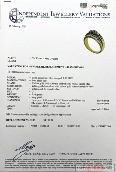 Colour: I; Clarity: I1-I2; Cut/make: GD