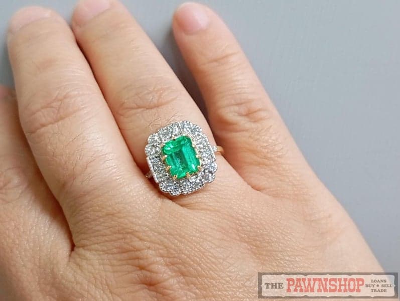 18ct Yellow Gold Emerald and Diamond Cluster Ring - $24,500 - MASSIVE REDUCTION