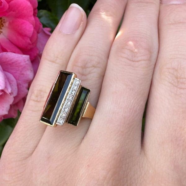 18ct Yellow Gold Green Tourmalione & Diamond Dress Ring ~ $8,500!