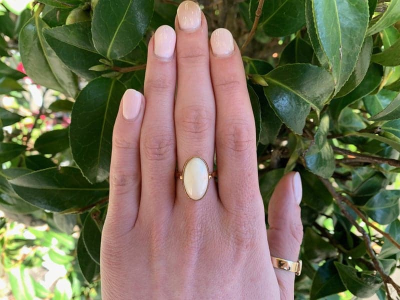 This ring features 1x oval cabochon jadeite piece set in an oval rub over setting.