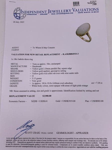 18ct Yellow Gold Jadeite Dress Ring ~ $3,900!