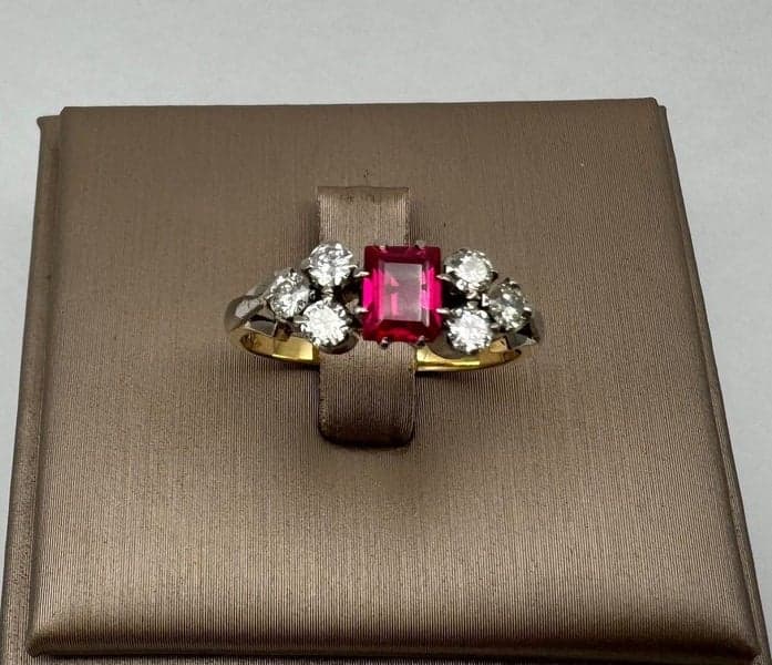 On offer here is an 18ct Yellow Gold & Platinum Lab-Grown Ruby & Diamond Dress Ring.