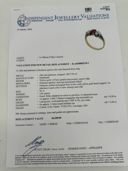 Replacement Value: $6,200 NZD