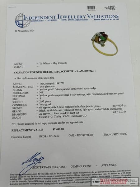 Replacement Value: $2,400 NZD