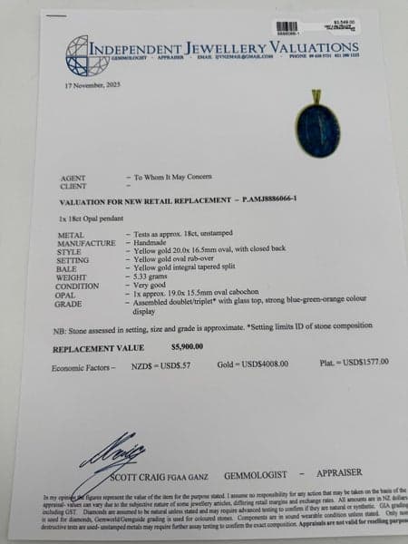 18ct Yellow Gold Opal Doublet Cabochon Pendant ~ $5,900!
