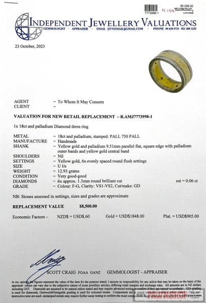 18ct Yellow Gold & Palladium Gents 6 Stone Diamond Ring 0.06ct TDW ~ $8,500