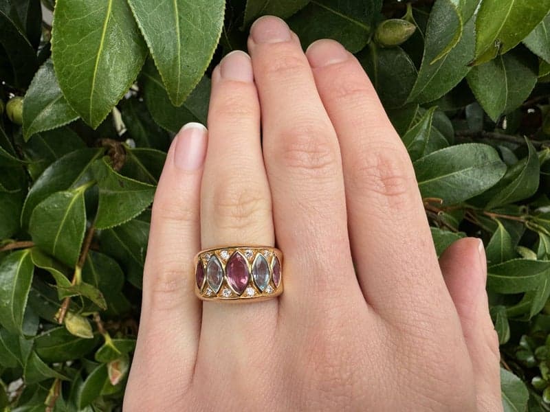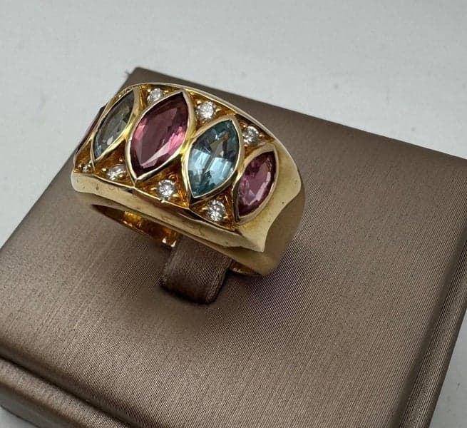 18ct Yellow Gold Pink & Blue Topaz Diamond Dress Ring ~ $6,200!