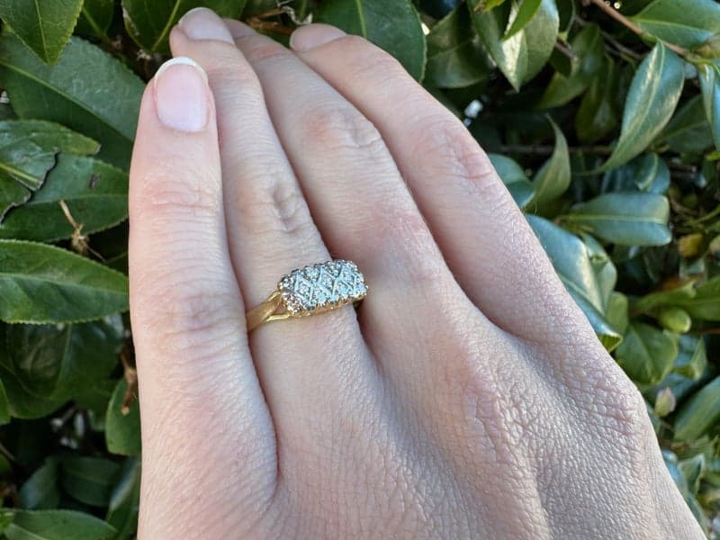 On offer here is a Vintage Style 18ct Yellow Gold & Platinum 11 Stone Diamond Dress Ring.