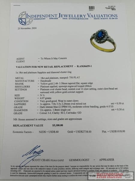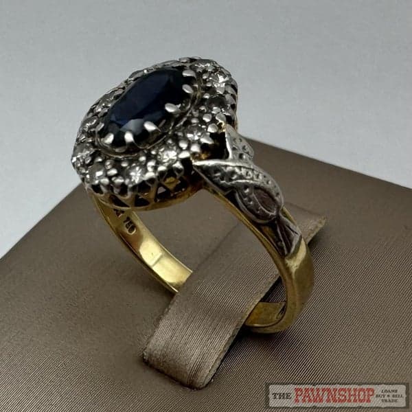 18ct Yellow Gold & Platinum Sapphire & Diamond Cluster Ring ~ $5,100!