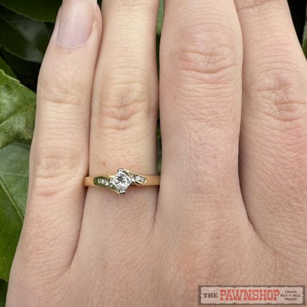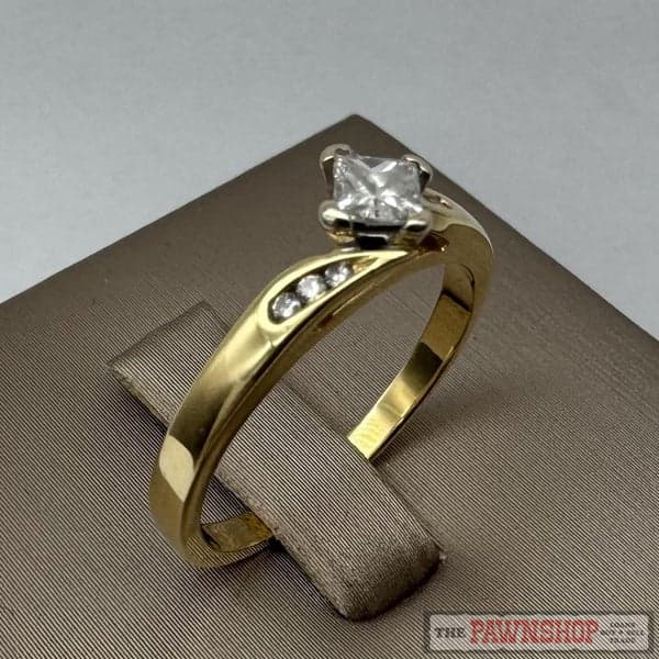 On offer here is an 18ct Yellow Gold Princess Cut Diamond Solitaire Ring with Shoulder Diamonds.