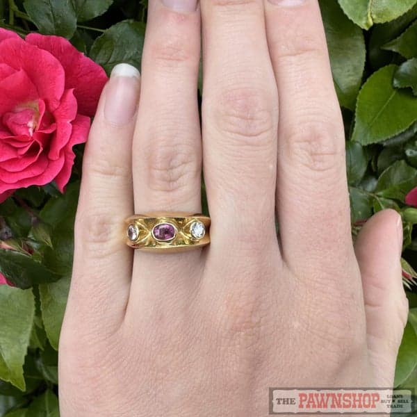 On offer here is a 18ct Yellow Gold Natural Ruby & Diamond Dress Ring