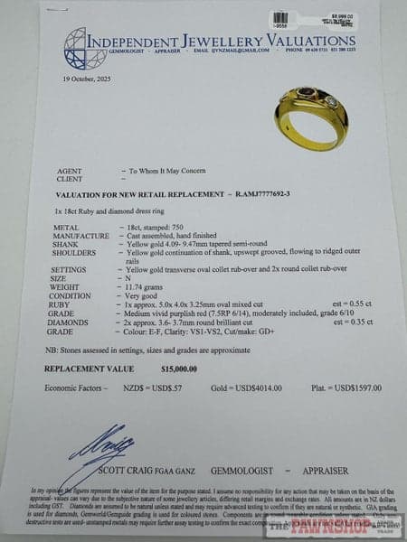 Replacement Value: $15,000 NZD