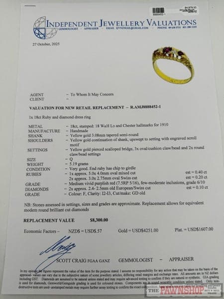 Replacement Value: $8,300 NZD