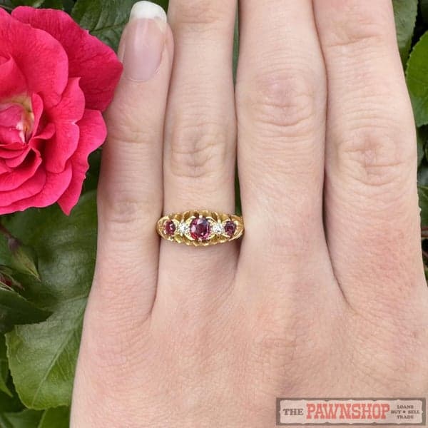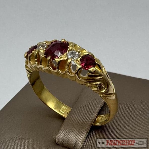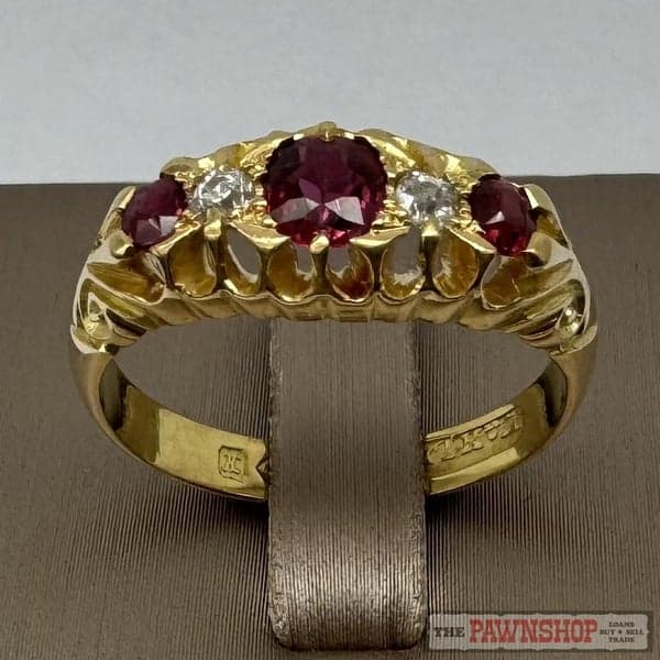 On offer here is a 18ct Yellow Gold Natural Ruby & Diamond Dress Ring